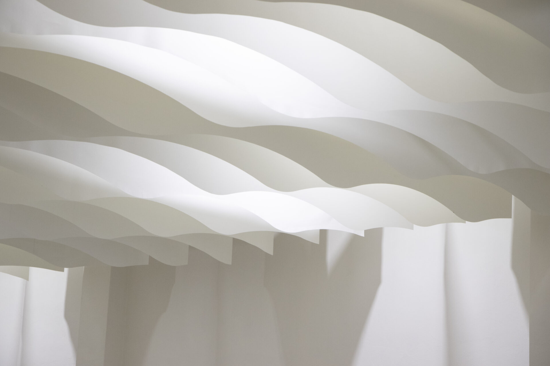 Ces textiles performants permettent la réalisation de plafonds et de murs de grande envergure se présentant sous diverses formes : surfaces planes, formes courbes ou organiques tendues sur des cadres rigides, formes libres à double courbure tendues par câbles, vellum suspendu.